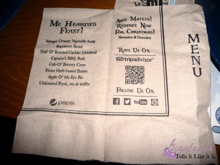 Menu Napkin Picture Of Pirates Voyage Myrtle Beach Tripadvisor